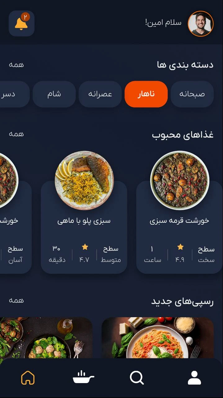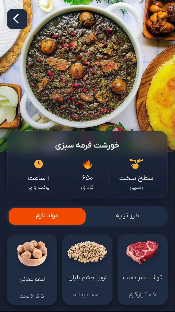 - قابلیت جستجوی دستور پخت بر اساس نام غذا، مواد اولیه و یا دستهبندی