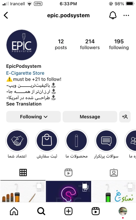 پیج کسب و کار اینستاگرامی (ویپ یکبار مصرف)